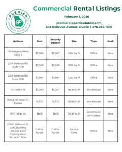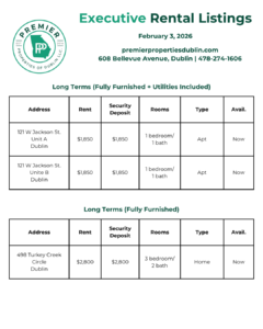 Below, we are sharing our latest rental listings (residential, commercial, & executive rentals). Our hardworking Property Management team is happy to assist you with any questions. Give us a call today at 478-274-1606.