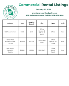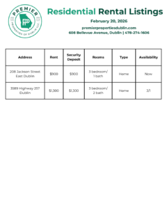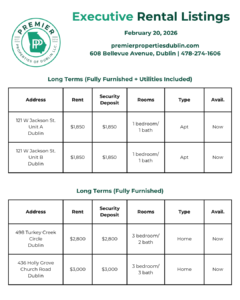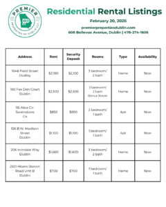 Below, we are sharing our latest rental listings (residential, commercial, & executive rentals). Our hardworking Property Management team is happy to assist you with any questions. Give us a call today at 478-274-1606.